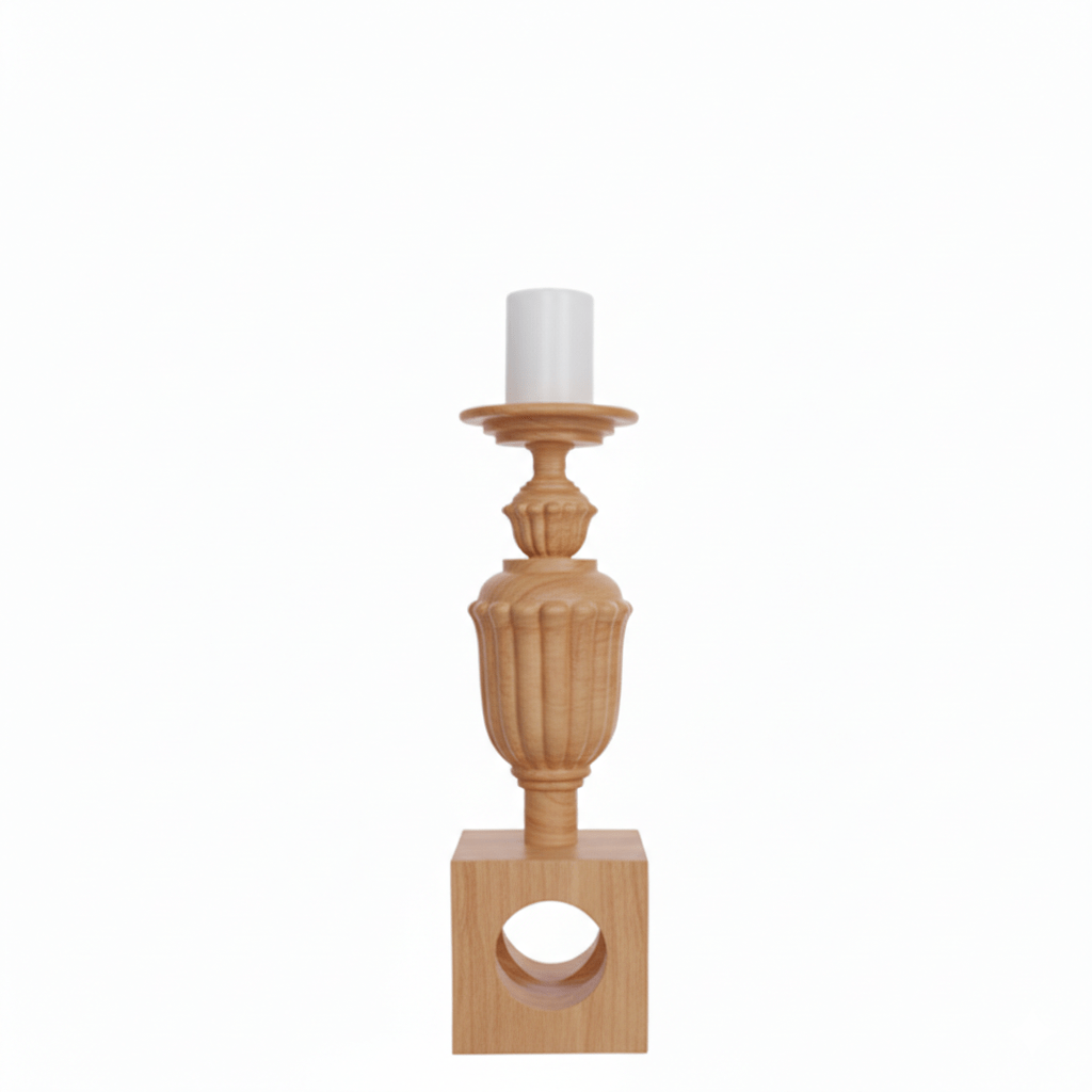 Inspired by cathedral candelabras, the Rosario collection refashions the look into a more restrained, modern piece. A beacon of light and quiet elegance, the carefully hand-carved candelabra is made from detailed Gmelina wood in matte charcoal finish.