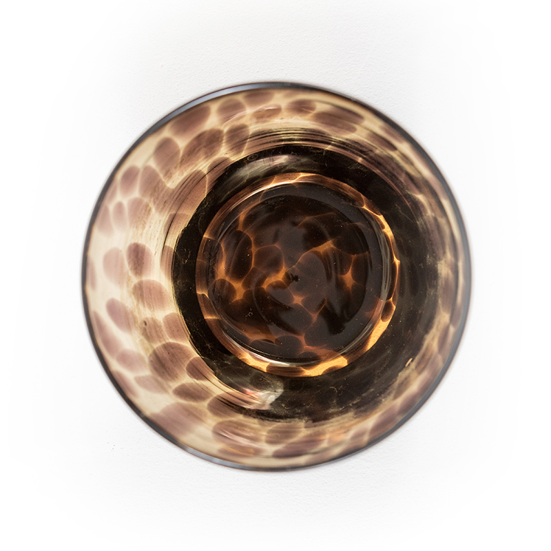 A vision of crystal waters in sepia is created when light passes through this hand blown glass vase in amber. A versatile home piece for displaying flowers and storing whatnot. Can be a candle holder, too!