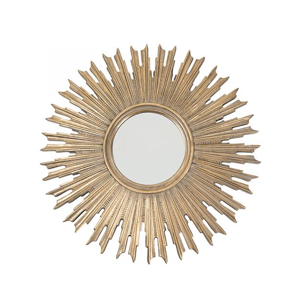 An ITO KISH favorite, a great sunburst mirror is a classic choice for walls that demand a focal point. Beautifully carved in gold-painted resin.