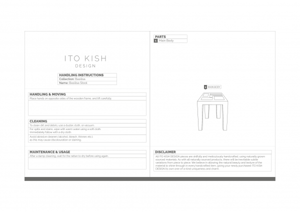 If not in-stock, ITO KISH Design collections are made-to-order with 45 to 60 working days with production lead time depending on the season. Packaging is basic to protect surfaces and corners. Cost for box, crating, and delivery will be an additional cost if required.