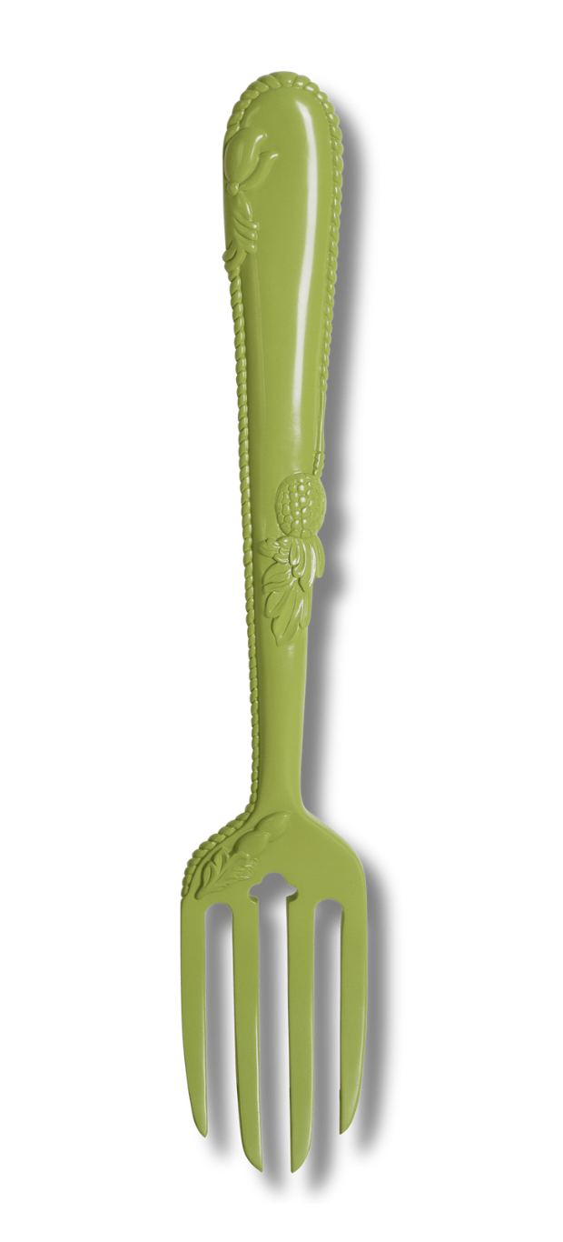 A familiar form, reimagined with quiet intention. This oversized spoon and fork draw from a Filipino household icon, translated into a sculptural wall object that speaks of everyday meals and shared tables. Finished in soft green and detailed with subtle floral relief, the pair carries both nostalgia and restraint — playful in scale, yet calm in presence.