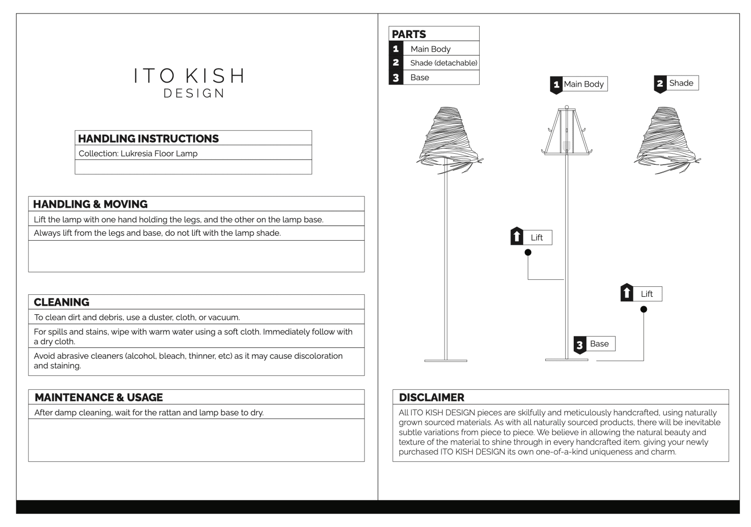 ITO KISH Design Collections are primarily made-to-order with 45 to 60 working days and production lead time depending on the season. Packaging is basic to protect surfaces and corners, and the cost for box, crating, and delivery will be an additional cost if required. In some cases, measurements may vary by a few centimeters as most items are made by hand.