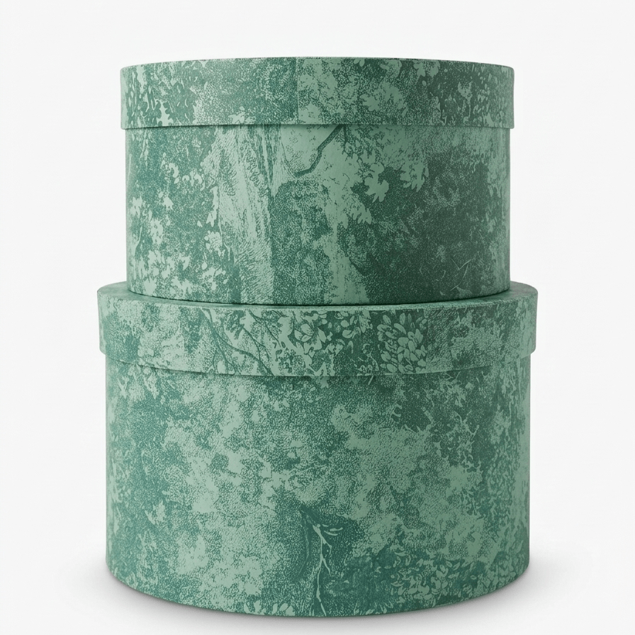 Elevate your storage with this exquisite round nesting boxes, featuring a lush green botanical print that blends vintage charm with modern elegance. Wrapped in high-quality textured paper, the intricate foliage pattern creates a serene, forest-inspired aesthetic.