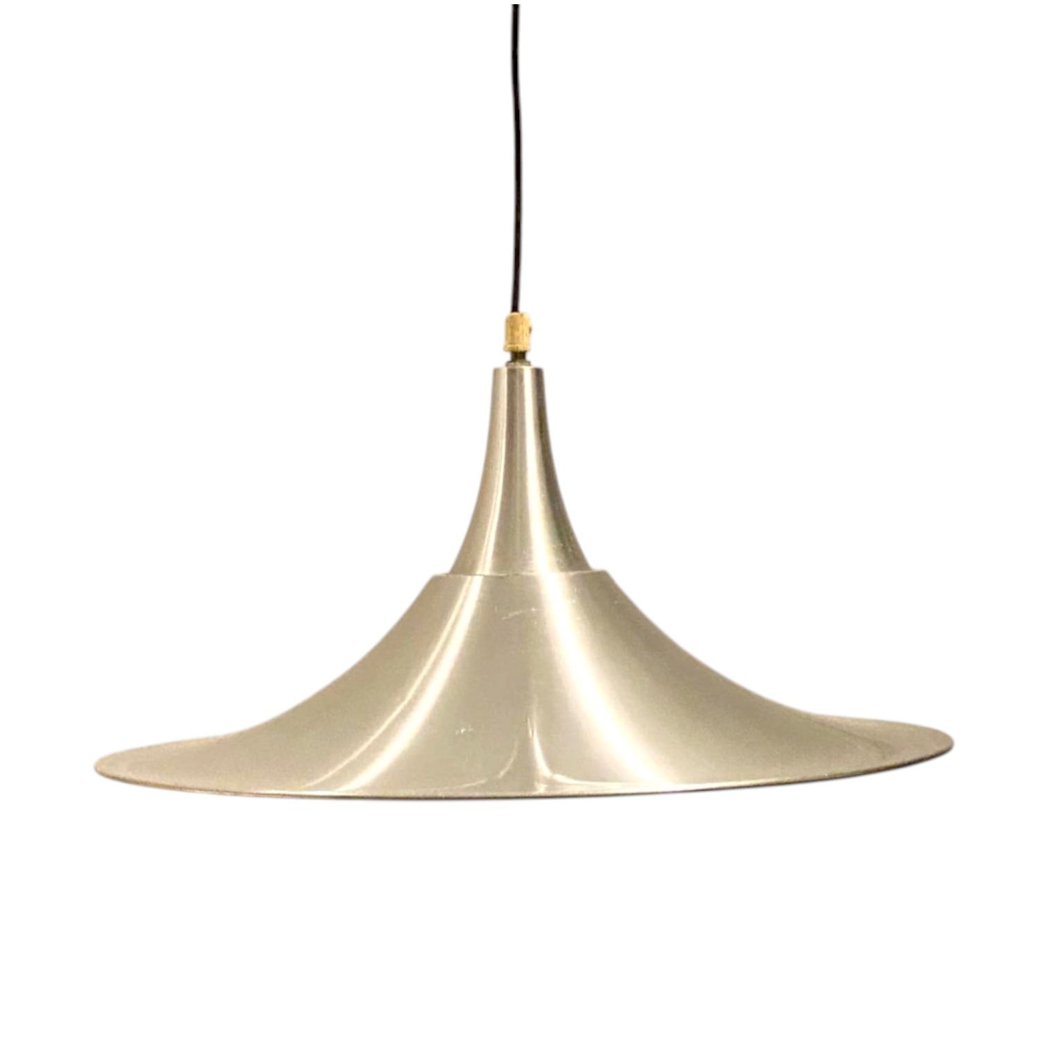 Add a touch of retro sophistication to your space with this stunning brushed aluminum mid-century modern pendant lamp. The lamp features a distinctive flared, wide-bottomed shade that beautifully reflects light and creates a warm, inviting glow. A sophisticated, elegant piece that seamlessly blends timeless design with a modern, contemporary aesthetic, this pendant light is the perfect statement piece for any dining area, kitchen, or living room, adding a sleek and stylish focal point to your decor.