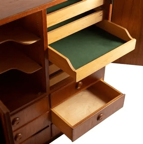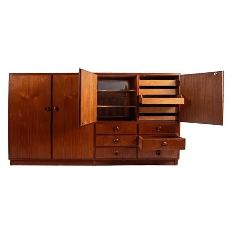 Sideboard/cabinet in teakwood. This piece is offering a lot of space for storage. Country of origin: Denmark