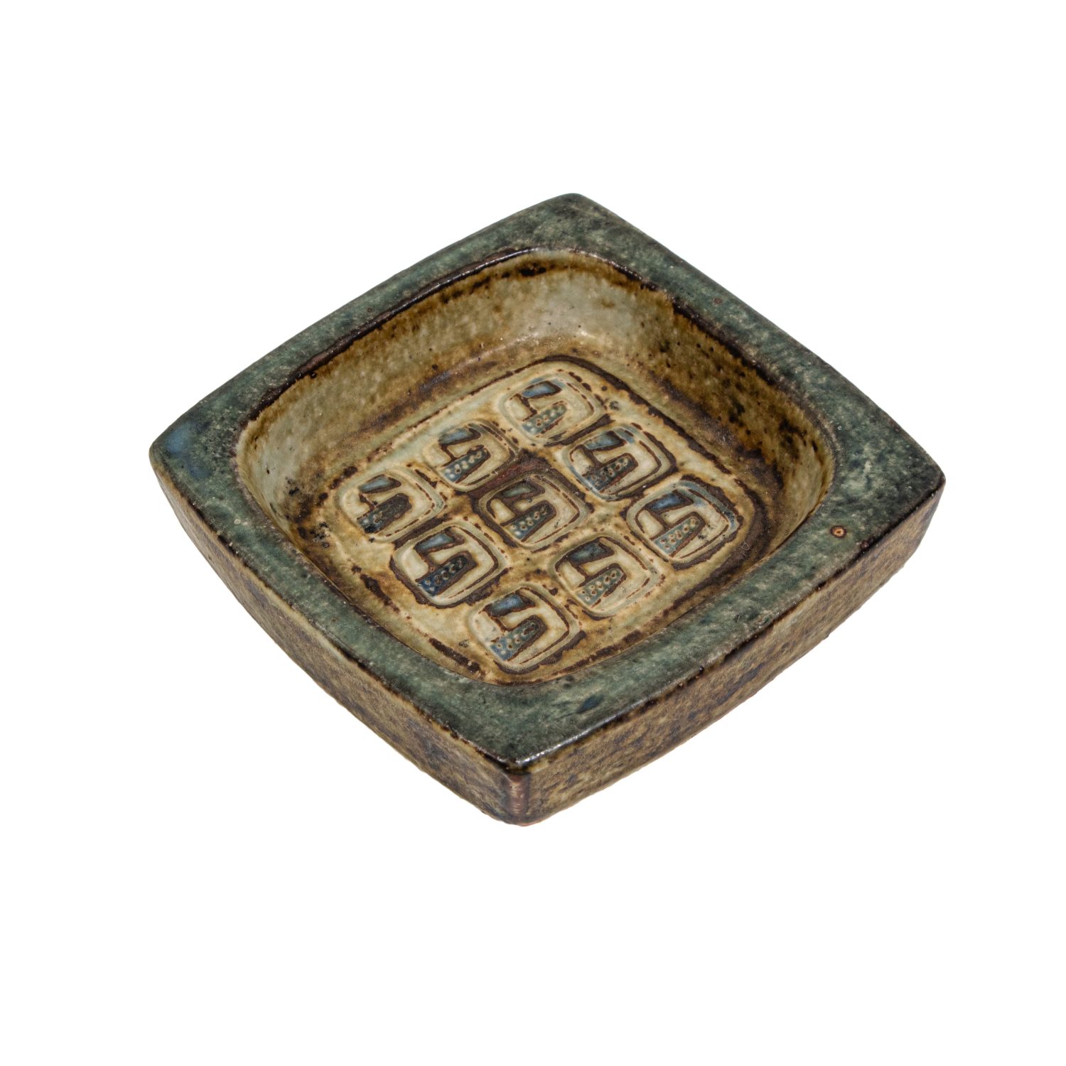 Square ceramic tray in somber color shade with a detailed intramural. Of Danish origin Of Danish origin.